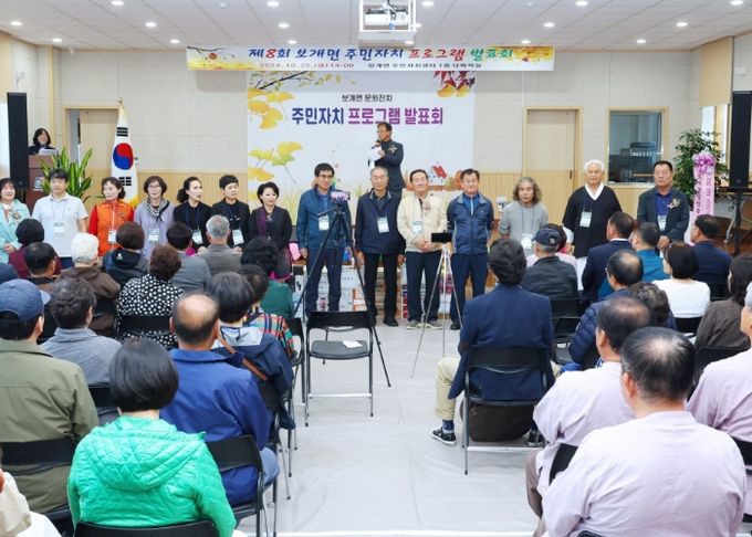 (중부시사신문) 안성시 보개면 주민자치위원회는 지난 25일 '제8회 보개면 주민자치 프로그램 발표회'를 개최했다. 이번 발표회는 노래, 댄스, 악기 연주 등 총 11개의 다양한 프로그램을 수강한 주민들이 그동안 갈고닦은 실력을 선보이는 자리로, 지역주민과 내빈들의 뜨거운 호응을 받으며 성황리에 마무리됐다.