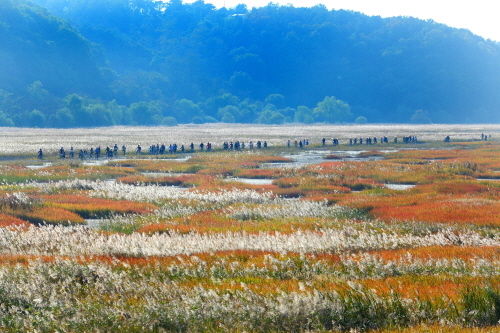 시화호 남단의 드넓은 초원은 현재 한국수자원공사에서 추진 중인 송산그린시티 개발지로 평소 일반인의 출입이 금지된 곳으로 4천만 평에 이르는 광활한 들판이다. 이곳은 1994년 시화방조제 물막이를 시작한 이래 20여년이 지나는 동안 바다가 육지화 되어가는 과정을 겪고 있다. 칠면초를 비롯한 염생식물이 소멸해가면서 지금은 무성한 갈대가 오색으로 가을빛에 물들고 있고, 천연기념물 큰고니와 희귀텃새인 검은머리물떼새 등 240여종의 식생이 서식하고 있는 생태보고이다.