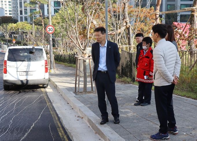 호계1동에서는 높낮이 조정이 필요한 횡단보도 경계석과 파손된 도로포장 상태를 확인하고, 경계석 보수를 통한 주민 통행 불편 완화 및 도로 재포장 등 현장에 맞는 개선방안을 관련 부서와 함께 논의했다.