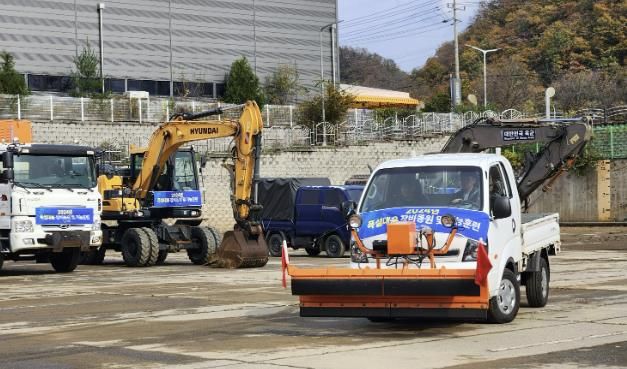 훈련에는 덤프트럭, 백호우, 트랙터, 제설차, 보행제설기 등 총 9대의 장비가 동원되었으며, 실제 상황을 가정해 훈련이 이뤄졌다. 특히, 인도 및 이면도로처럼 차량 진입이 어려운 취약 지역은 자율방재단에 배부한 소형 보행제설기 6대를 투입해 선제적 제설 작업에 나설 수 있도록 했다.