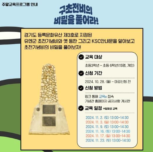 (중부시사신문) 오산시는 유엔군 초전기념관에서 이달 30일까지 주말 교육프로그램을 운영한다.
