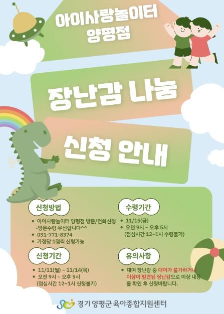 조연경 센터장은 “양평군이 2024년 환경교육도시로 지정된만큼 이번 행사가 중고 장난감의 재활용으로 탄소중립에 기여하고, 관내 영유아의 건강한 성장과 놀이 활동에 도움이 되길 바란다”고 말했다.