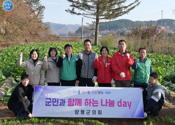 (중부시사신문) 양평군의회는 13일 ‘2024년 군민과 함께하는 나눔 day’ 11월 행사로 양평군 청운면 비룡리 새마을 배추밭에서 김장배추 수확 봉사활동을 가졌다.
