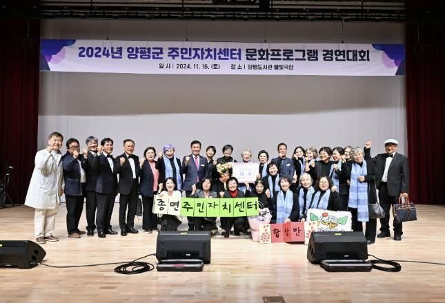 이날 영예의 대상은 서종면의 서종합창이 차지하며 150만원의 우수 사업비를 확보했다. 최우수상은 △양평읍 갈산하모니 △청운면의 켈리가 차지했으며, 우수상은 △강상면의 언니쓰 △강하면의 잭팟777 △단월면의 단월아리장고 △개군면의 개군마당패가 수상했다. 또한, 장려상에는 △옥천면의 더울림색소폰클럽 △양서면의 두물놀량 △양동면의 양동바일란도 △지평면의 지평태극권 △용문면의 알로하 용문이 이름을 올렸다. 대상팀인 서종합창은 2025년 경기도 주민자치 문화 경연대회에 양평군 대표로 출전한다.