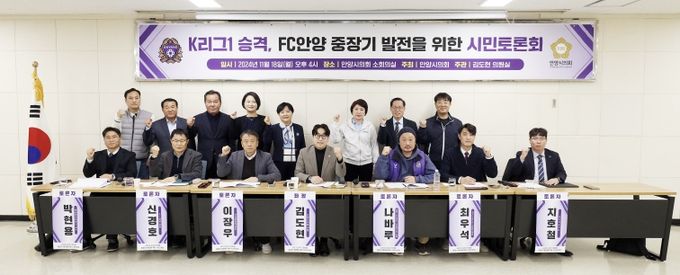 (중부시사신문) 안양시의회 김도현 의원(민주당, 평촌․평안․귀인․범계․갈산)은 지난 18일 오후 4시, 안양시의회 소회의실에서 ‘FC안양 중장기 발전을 위한 시민토론회’를 개최했다. 이번 토론회는 FC안양의 K리그2 우승과 1부 승격에 따른 현안을 분석하고 발전방향을 모색하기 위해 마련됐다.