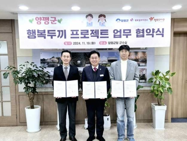 (중부시사신문) 양평군은 지난 19일 군수 집무실에서 행복얼라이언스(사무국 행복나래(주)), 행복도시락 사회적협동조합과 ‘행복두끼 프로젝트’ 업무 협약을 체결했다.