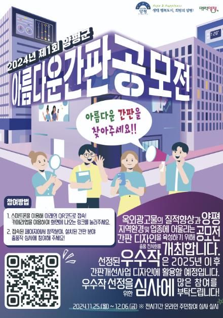 전진선 군수는 “아름다운 간판은 단순히 정보를 전달하는 수단을 넘어 도시의 지역경관과 개성을 표현하는 중요한 요소로 주민들이 직접 참여해 우수작을 선정함으로써 모두가 공감할 수 있는 도시 미관을 만들어가고자 한다”고 전했다.