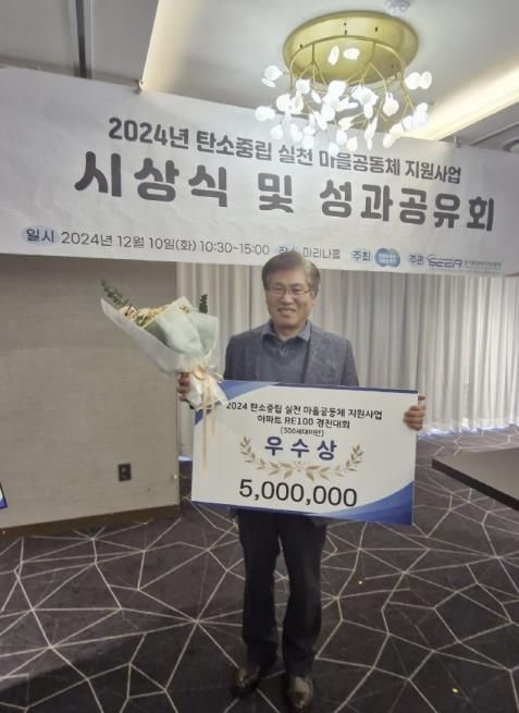 또한, 포천시 선단동 소재 세창 선단마을아파트는 입주민 대상 소등 행사 개최, 콘센트 대기전력 차단 홍보, 공용부지 태양광 설치 등 에너지 절감 실적을 인정받아 아파트 RE100 부문에서 우수로 선정됐다.