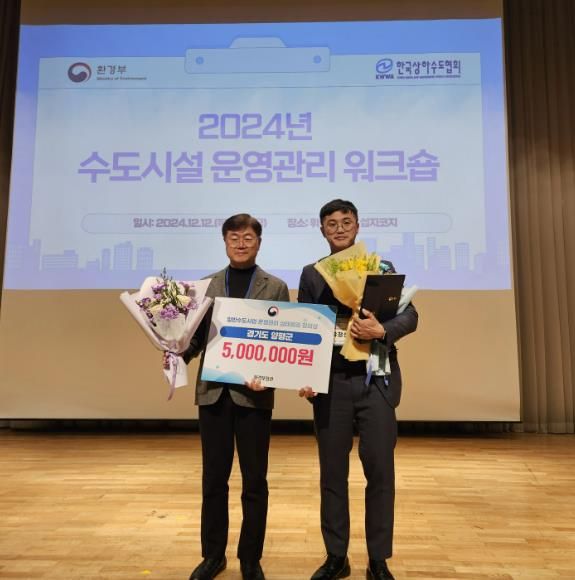 (중부시사신문) 양평군이 12일 제주도에서 열린 수도시설 운영관리 워크숍에서 환경부 ‘2024년 수도시설 운영관리 실태점검 평가’ 우수기관으로 선정돼 포상금 500만 원과 유공자 표창을 받았다.