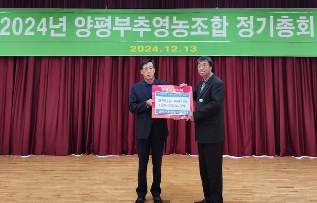 (중부시사신문) 양평부추영농조합법인은 지난 13일 개최된 ‘양평부추영농조합 정기총회’에서 관내 취약계층 가정을 위한 행복 나눔 이웃 돕기 성금 5백만 원을 전달했다.