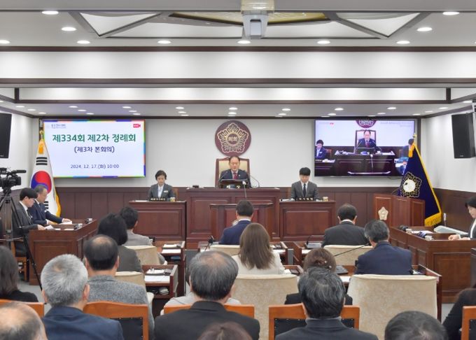 제334회 제2차 정례회 예산결산특별위원회(위원장 박인범)에서는 당초 집행부에서 제출된 ▲ '2025년도 예산안' 6,082억 5천만 원 중, 재검토가 필요한 33개 사업에서 3억 6,464만 원을 삭감해 수정 의결했고, ▲'2025년도 기금운용계획안', ▲'2024년도 제3회 추가경정예산안', ▲'2023년도 제3차 기금운용계획 변경안'은 원안대로 가결했으며,