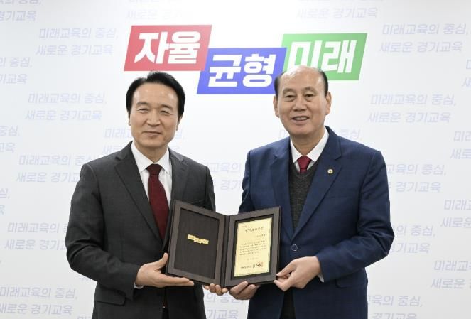 경기교육대상은 경기도 교육의 정책목표 달성과 교육 자치 발전 및 교육여건 개선 등 공적이 현저한 자를 발굴·포상해 경기도 교육청이 수여한다. 이날 수여식에는 임태희 경기도 교육감이 참석해 표창패를 전달하고 환담을 나눴다.