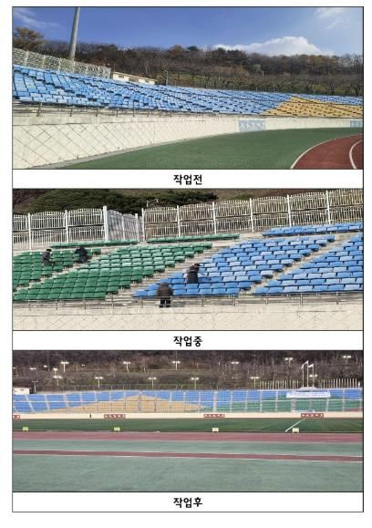 이에 시설사업소는 무려 4주에 걸쳐 자체적으로 관중석 의자 복원 작업을 완료했다. 김태화 시설사업소장은 “직원들의 노력으로 최대 10억의 예산을 아낀 성과”라며 “이는 인조잔디 재활용 사례에 이어 시설사업소의 두 번째 예산 절감 사례”라고 전했다.