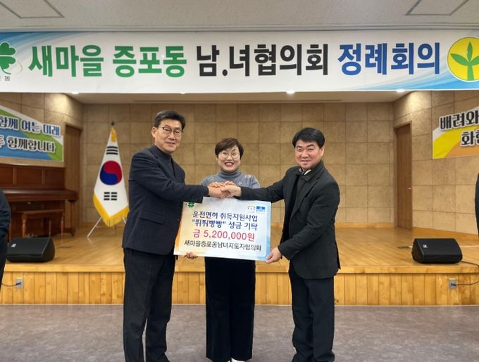 (중부시사신문) 증포동 새마을남녀협의회는 12월 18일 증포동 저소득 사회초년생을 위한 운전면허 취득 지원을 위해 성금 520만 원을 증포동행정복지센터에 기탁했다.