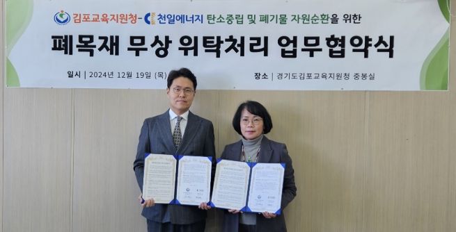 (중부시사신문) 김포교육지원청이 19일 ㈜천일에너지와 폐목재 무상 위탁처리 업무협약을 체결했다.