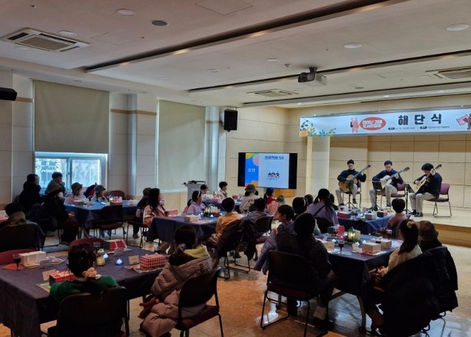 이번 행사는 지난 1년 동안 진행된 ‘태어난 김에 도서관일주’ 프로그램의 종료를 축하하고, 완주자들과 함께 그동안의 성과를 공유하는 의미 있는 자리가 됐다. 1부는 프로젝트 54의 클래식 기타 공연으로 시작됐으며, 40여 분 동안 동요 메들리와 디즈니 모음곡 등 다양한 곡이 연주됐다. 어린이들도 함께 즐길 수 있는 공연으로 큰 호응을 얻으며 마무리됐다.