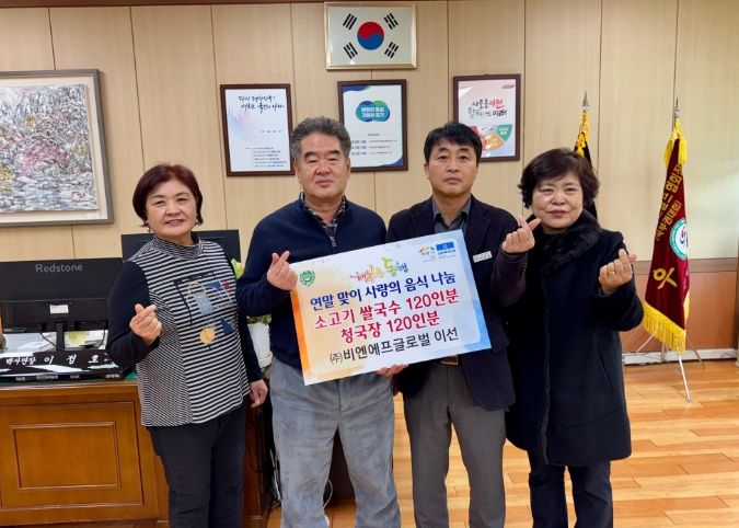 (중부시사신문) 이천시 백사면은 지난 12월 24일 백사면에 있는 ㈜비엔에프글로벌 이선으로부터 연말을 맞아 홀몸 어르신과 장애인 등 저소득 취약계층을 위해 소고기 쌀국수 120인분과 청국장 120인분을 기탁받았다고 밝혔다.