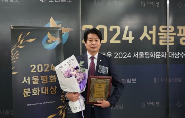 (중부시사신문) 동두천시의회 황주룡 부의장이 지난 26일 서울 국회의원회관 대회의실에서 열린 '2024 서울평화문화대상 시상식'에서 행정부문 대상을 받는 영예를 안았다.