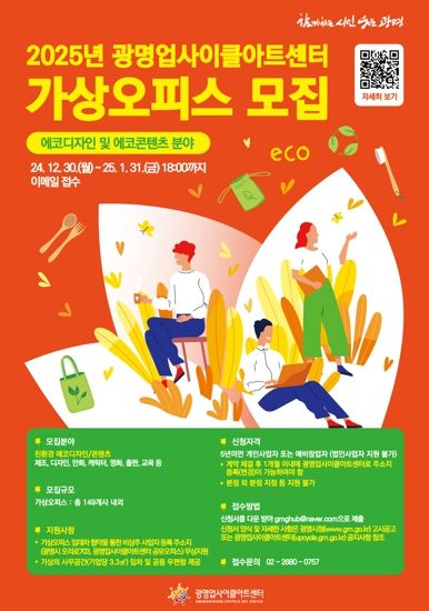 (중부시사신문) 광명시 광명업사이클아트센터는 오는 12월 30일부터 내년 1월 31까지 2025년 상반기 가상오피스 입주 기업을 모집한다.