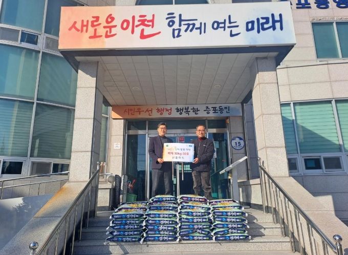 (중부시사신문) 이천시 증포동은 지난 12월 27일 이천 신흥마트로부터 어려운 이웃에게 전달해달라며 사랑의 백미 10kg 50포를 기탁받았다고 전했다.