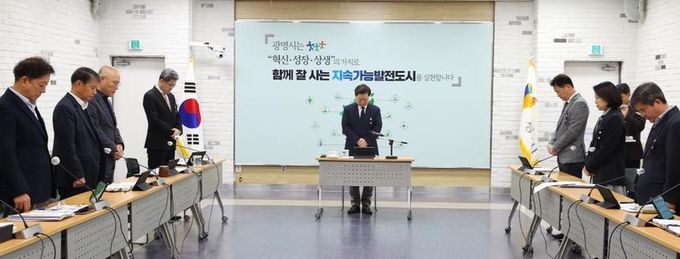 박승원 광명시장은 30일 아침 첫 일정인 주간정책회의 개최에 앞서 희생자에 대한 묵념으로 애도의 뜻을 표하면서 “최대한 조용하고 차분하게 애도 기간을 보낼 수 있도록 준비하라”라고 주문했다.