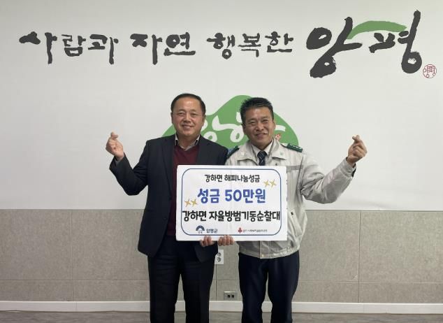 (중부시사신문) 양평군 강하면 자율방범기동순찰대는 26일 강하면사무소를 방문해 강하면의 어려운 이웃을 위해 써 달라며 성금 50만원을 기탁했다.