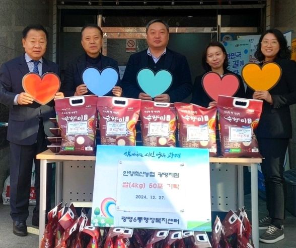 (중부시사신문) 광명시 안양축산농협 광명지점은 지난 27일 관내 기초생활수급자와 독거노인 등 저소득층을 위해 광명6동 행정복지센터에 쌀 200kg을 전달했다.
