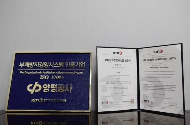 (중부시사신문) 양평공사는 지난 16일 한국경영인증원(KMR)으로부터 국제표준화기구(ISO)가 제정한 국제표준 부패방지경영시스템(ISO 37001) 인증을 획득했다고 밝혔다.
