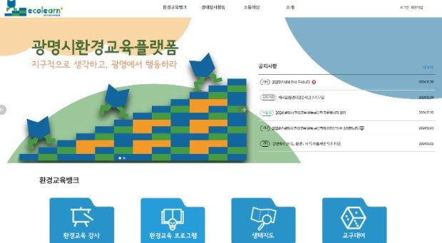 이 플랫폼은 ▲환경교육뱅크 ▲생태탐사활동 ▲소통마당 등으로 구성돼, 광명시 환경교육 자원과 정보를 한눈에 볼 수 있다.