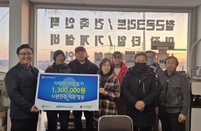 다원인력 김유미 대표는 “다원인력 직원과 근로자들이 2024년 한 해 동안 커피자판기를 이용한 수익금을 지역사회 어려운 이웃들을 위해 기부할 수 있어 기쁘다”며 “지역사회 어려운 이웃들이 따뜻한 겨울을 보내는데 조금이나마 보탬이 되길 바란다”고 전했다.
