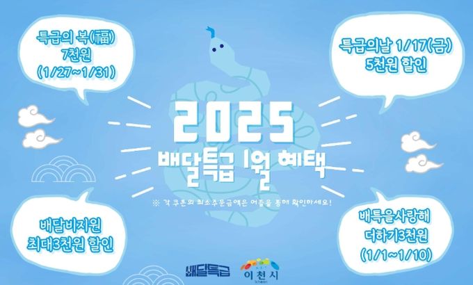 (중부시사신문) 이천시는 공공배달앱 ‘배달특급’소비자 대상으로 을사년 새해를 맞아 특급 이벤트를 추진한다고 밝혔다.