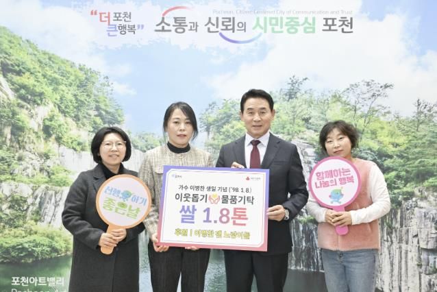 (중부시사신문) 포천시 군내면 행정복지센터는 지난 7일 가수 이병찬을 사랑하는 팬클럽 ‘노랑이’가 이병찬의 생일(1월 8일)을 기념해 쌀 1.8톤을 기부했다고 전했다.