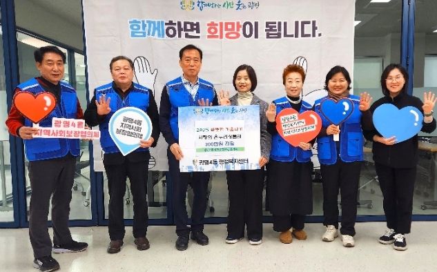 (중부시사신문) 광명시 광명4동 지역사회보장협의체는 지난 7일 따뜻한 겨울나기를 지원하기 위해 관내 저소득 30가구에 온누리상품권 300만 원을 후원했다.
