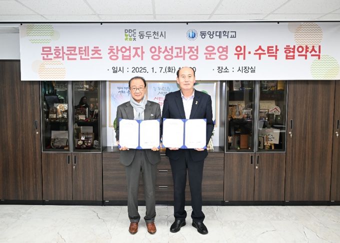 (중부시사신문) 동두천시는 지난 7일 동양대학교 김재열 이사장, 최성해 총장과 ‘문화콘텐츠 창업자 양성과정’ 위·수탁 협약을 체결했다고 밝혔다.