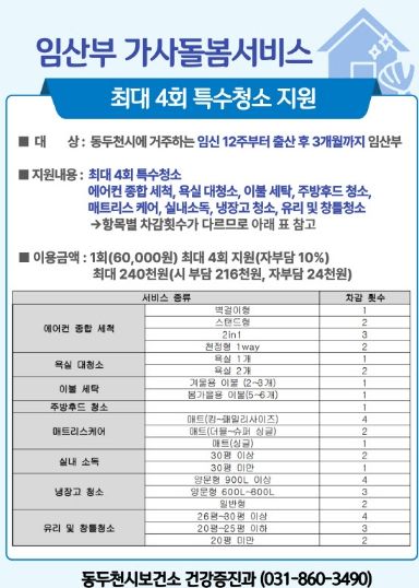 (중부시사신문) 동두천시 보건소는 일과 가정이 양립하는 출산 장려 환경을 조성하기 위해 ‘임산부 가사돌봄 서비스 지원 사업’을 수시 모집한다고 8일 밝혔다.