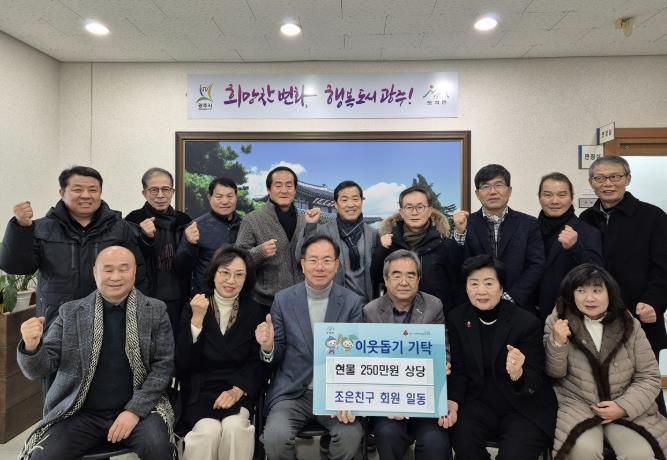 광주시 발전 도모를 위해 33인이 결성한 ‘조은 친구’는 2022년 도척면 연탄 기부를 시작으로 매년 나눔문화 확산에 앞장서고 있으며 올해는 어려운 이웃들이 설 연휴를 풍성하게 보낼 수 있도록 육류세트와 즉석식품 등을 기탁했다.