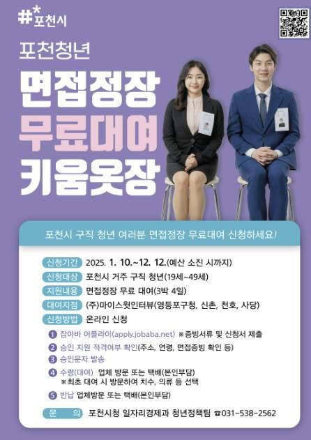 ‘청년 면접정장 무료대여’ 사업은 포천시에 거주하는 19세에서 49세 이하의 구직 청년이라면 누구나 신청할 수 있다.