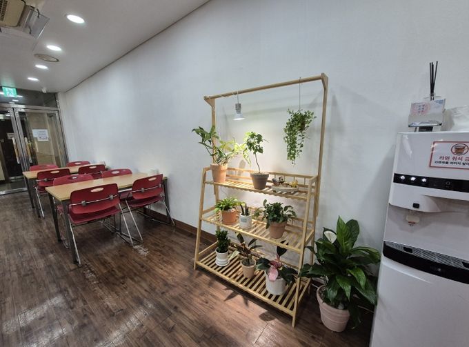 지저분해진 벽에 페인트 시공을 하고, 보다 아늑하고 따뜻한 분위기를 위해 화분을 활용, 미니 정원을 꾸몄다.