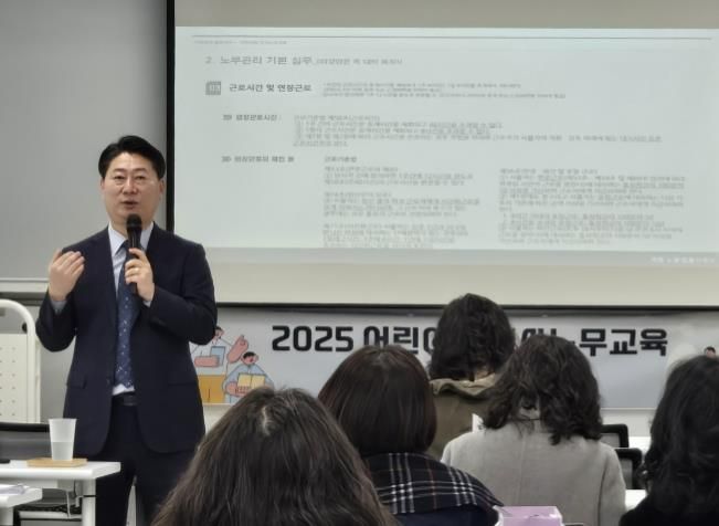 이번 교육은 인사·노무관리 노하우와 최신 법률 정보를 전달하는 시간으로, 어린이집 운영자가 반드시 알아야 할 ▲2025년 개정된 근로기준법 주요 내용 ▲임금체계 설계 및 관리 ▲근로시간과 휴게시간 준수 ▲근로계약서 작성 및 관리 ▲최근 인사노무 관련 법률 개정 사항 등 실무 중심의 내용으로 구성됐다.