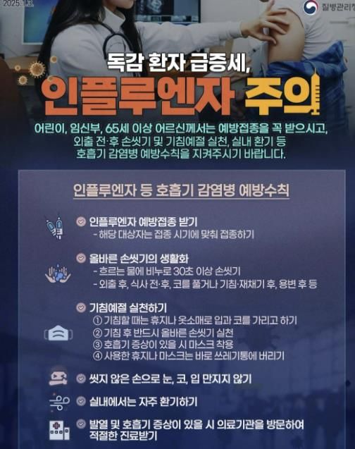질병관리청에 따르면 올해 1주 차 인플루엔자(독감) 환자는 인구 1천 명당 99.8명으로 지난 2016년 이후 8년 만의 최대치를 기록할 만큼 빠른 속도로 확산하고 있다.