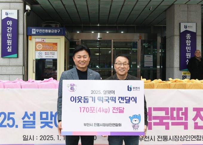 부천시전통시장상인연합회는 2012년부터 매년 설을 맞아 이웃돕기 떡국떡 나눔 행사를 이어오고 있으며, 이날 행사에 준비된 떡국떡은 총 4kg, 170포(544만원 상당)로, 부천시 돌봄지원과를 통해 관내 다사랑 푸드마켓과 복지관 등 15개소에 전달될 예정이다.