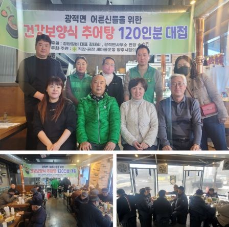 (중부시사신문) 양주시 광적면은 지난 14일 ‘직장공장 새마을운동 양주시협의회’가 광적면 청담갈비에서 지역 어르신 120명을 대상으로 추어탕 나눔행사를 열었다고 밝혔다.
