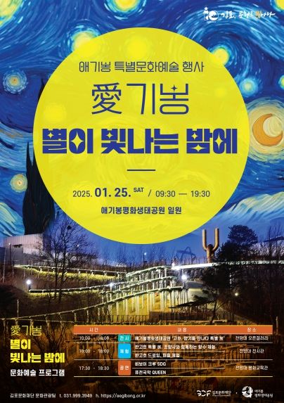 (중부시사신문) 글로벌 관광명소 애기봉 평화생태공원에서 오는 25일 2025년도 새해 첫 야간행사를 개최한다. 이번 행사는 특별전시와 함께 향수 체험, 다양한 공연 등이 마련되어 있어 전 연령대가 즐길 수 있어 설연휴 관람객들에게 큰 인기를 끌 것으로 전망된다.