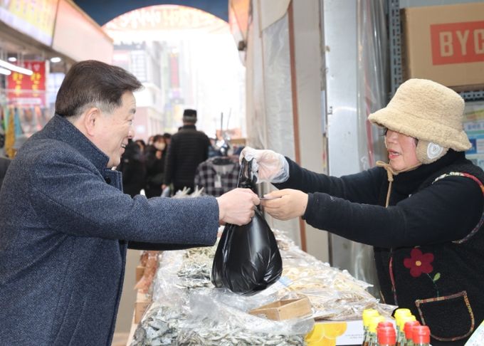 (중부시사신문) 박승원 광명시장이 설 명절을 앞두고 20일 광명전통시장에서 물가를 살피며 상인과 시민들을 격려했다.