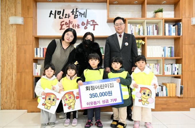 이날 기부식에는 강수현 양주시장, 성경진 원장, 보육교사 및 4세 원아 5명이 참석했으며, 기부된 성금은 사회복지공동모금회를 통해 관내 취약계층에 전달될 예정이다.