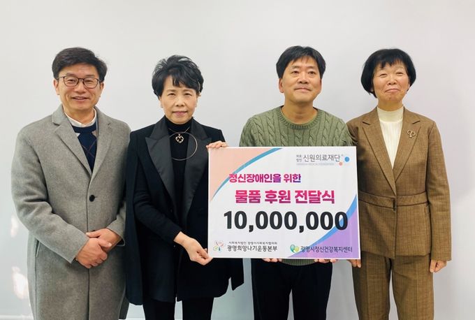 (중부시사신문) 의료법인 신원의료재단은 지난 21일 설을 맞아 광명시 마음건강센터 회원들을 위해 1천만 원 상당의 물품을 광명희망나기운동본부에 전달했다.