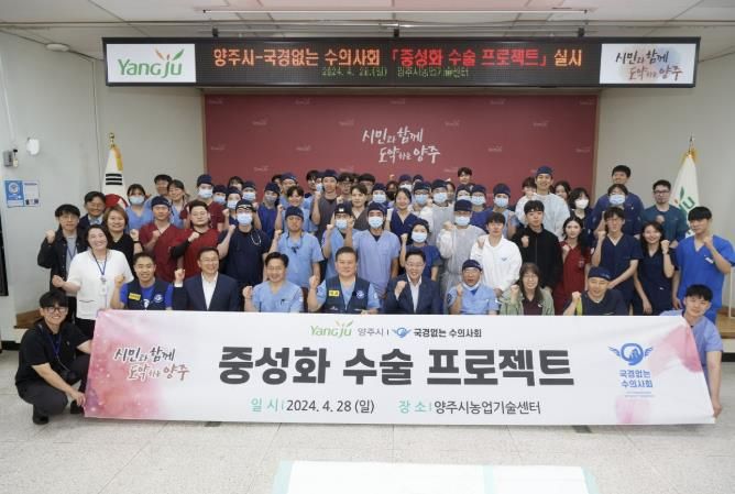 강수현 양주시장을 비롯해 김재영 국경없는 수의사회 회장, 이승철 국경없는 수의사회 사무국장, 자원봉사 수의사 및 수의대생 100여 명 등이 참여해 성공적으로 진행됐다.