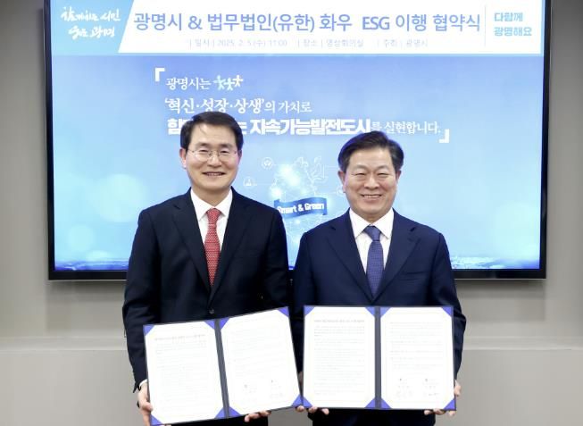 박승원 광명시장은 “이번 협약은 지역 내 ESG 경영 문화를 정착시키고 기업들의 지속가능한 성장을 돕는 중요한 발판이 될 것”이라며 “화우와 함께 중소기업들의 ESG 경쟁력을 강화하고 변화하는 경영 환경에 효과적으로 대응할 수 있도록 적극 지원하겠다”고 밝혔다.