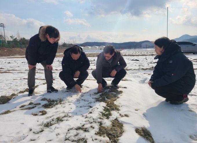 (중부시사신문) 이천시와 국립식량과학원 중부작물부는 폭설과 한파로 인한 맥류 동해(농작물 저온 피해) 피해를 예방하기 위해 지난 10일 현장점검을 실시했다.