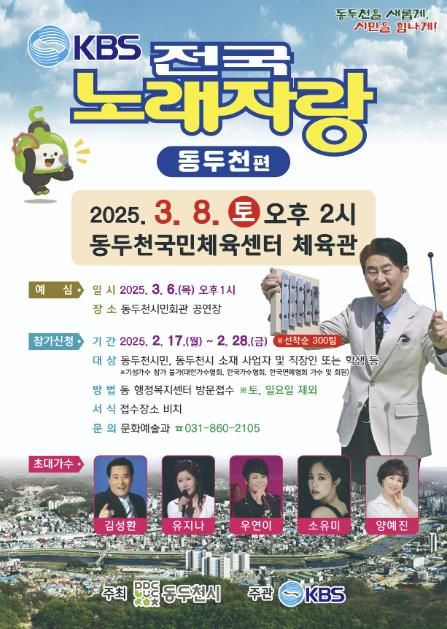 (중부시사신문) 동두천시는 오는 3월 8일, 동두천 국민체육센터 체육관에서 10년 만에 KBS 전국노래자랑을 개최한다고 밝혔다.